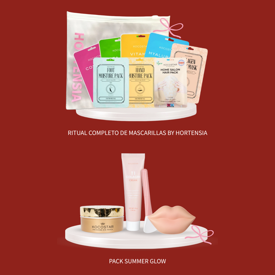 ![]() | PACKS NAVIDEÑOS: Esta Navidad tenemos dos packs edición especial pensados para sorprender y regalar o regalarte un pedacito de Hortensia. -RITUAL COMPLETO DE MASCARILLAS BY HORTENSIA: Un pack que contiene mascarillas desde la cabeza a los pies, compuesto por un total de 8 mascarillas + estuche exclusivo. -PACK SUMMER GLOW: Un pack que contiene: T1 Collagen Cream, Princess Eye Patch Gold, Lip Care Kit Duoduo. Multifuncional y completo para cuidar de tu piel en el verano y conseguir ese "glow" natural. |